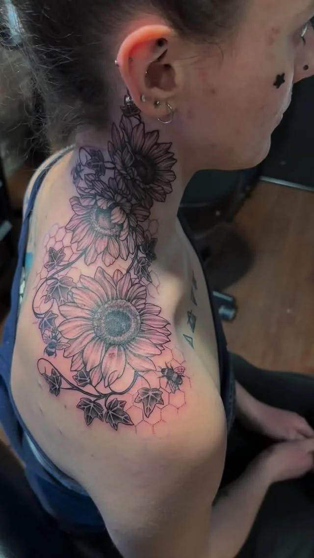 Before tattooing, she studied as an oil and acrylic painter, did mural work and commissioned portraits, and that background continues to shape the way she approaches her work today.